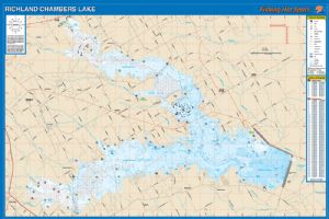 Richland Chambers Lake, Texas Waterproof Map (Fishing Hot Spots)An excellent forage base feeds marvelous growth rates for gamefish. Black bass are the anglers prime target with many double-digit weights reported. White bass and crappie numbers are great. This map is clean, easy-to-read, and detailed map of the lake. It has a latitude/longitude grid and GPS coordinates. Fishing tips and techniques are included. Size - 24 x 36